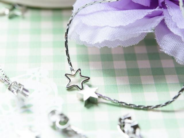 ゆらゆら揺れる華奢チェーンの先には2種類のお星様がまるで流れ星みたい♪