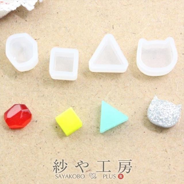 シリコンモールド ミニミニ4種型セット 各3個12個入 三角 四角形 ストーン ネコ ねこ 透明 型 鏡面 UVレジン液 立体 ハンドメイドパーツ