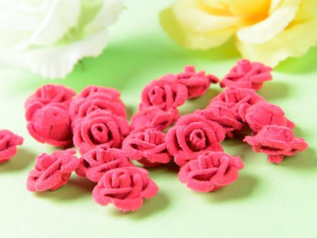アルミ薔薇 ベロア風コーティング(径約15mm)約20個 ローズピンク 通し穴付き 1穴 花 ばら アクセサリーパーツ 手芸材料 デコ ネイル