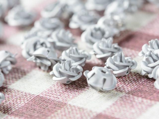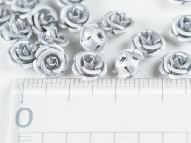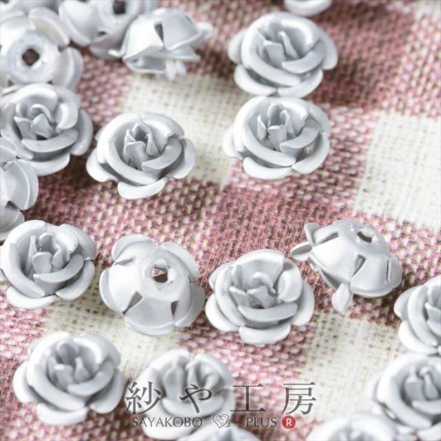 高品質アルミバラ メタルカラー(径約8mm)約50個 シルバー 通し穴付き 1穴 花 ばら アクセサリーパーツ 手芸材料 デコ ネイル