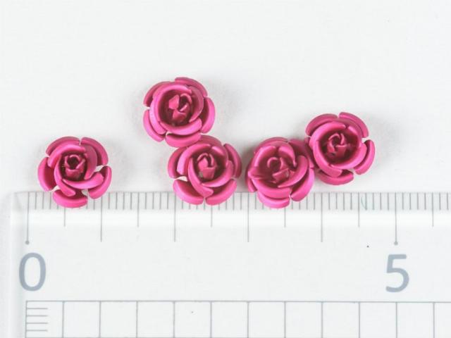 高品質アルミバラ メタルカラー(径約10mm)5個 マゼンタ 通し穴付き 1穴 花 ばら アクセサリーパーツ 手芸材料 デコ ネイル 部品