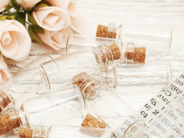 レジンアクセサリー・インテリア小物の製作にピッタリ☆コルクキャップ付きミニボトル。