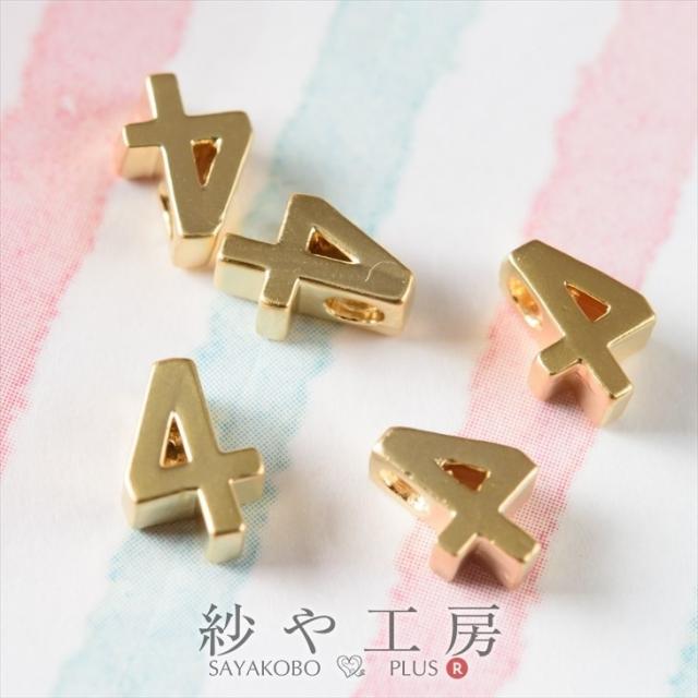 チャーム 数字チャーム 4 10mm ゴールド 5個 5ヶ 約1cm チャームパーツ 数字 通し穴付き 横穴 真鍮 アクセサリー アクセサリーパーツ パーツ メタルチャーム
