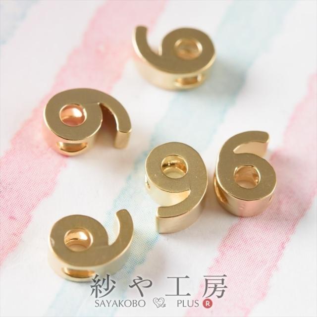 チャーム 数字チャーム 9 10mm ゴールド 5個 5ヶ 約1cm チャームパーツ 数字 通し穴付き 横穴 真鍮 アクセサリー アクセサリーパーツ パーツ メタルチャーム