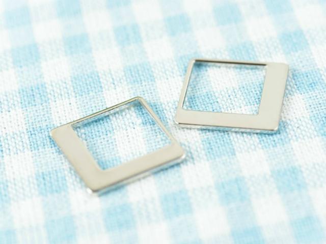 大振りなホールモチーフが存在感抜群!クールなスクエア型メタルプレートチャーム☆