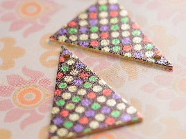 【内容詳細】メタルチャーム トライアングルプレート 水玉レトロ柄 カラフル 2個