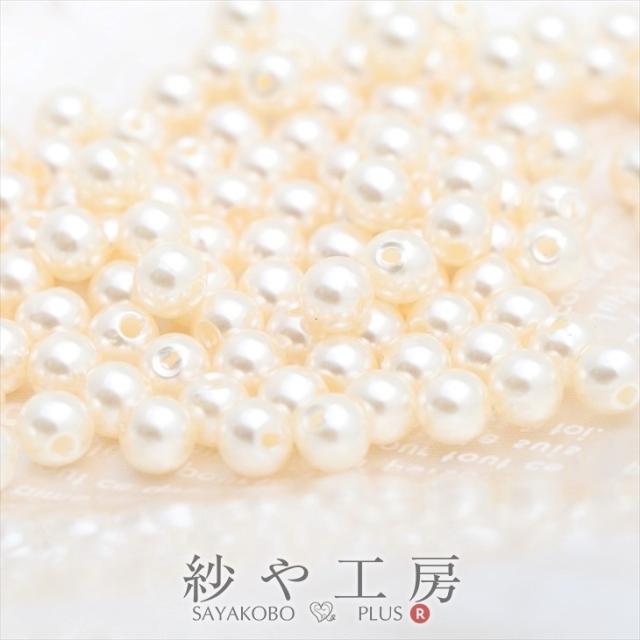 100個プラスチック 樹脂パール 6mm クリームホワイト 黄色白系 メタリックセレブカラー ビーズパーツ アクセサリー材料 パール素材 ビーズ