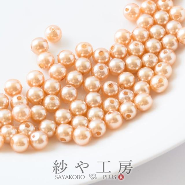 100個プラスチック 樹脂パール 6mm シャンパンゴールド 薄い金 メタリックセレブカラー ビーズパーツ アクセサリー材料 パール素材