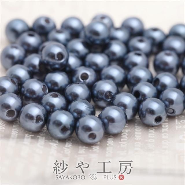 50個プラスチック 樹脂パール 8mm ミッドナイトブルー 濃い青 メタリックセレブカラー ビーズパーツ アクセサリー材料 パール素材