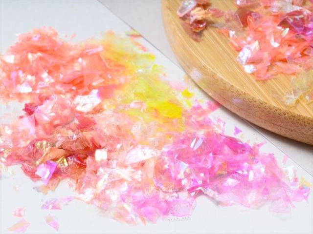 クラッシュホログラム 約0.3g×暖色系5色セット オーロラカラー ラメフィルム アートパーツ 樹脂 レジン封入 デコ ネイル用品 材料