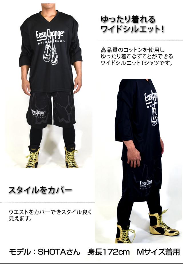 Tシャツ EasyChange 綿100% メンズ レディース 男女兼用 半袖 ボクシング柄 ワイド タイト ブラック ポイント消化