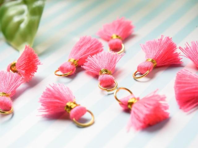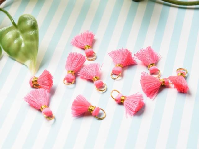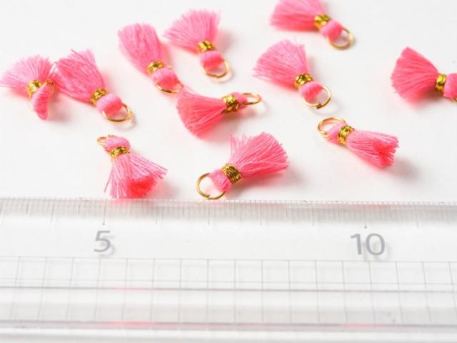 タッセル フリンジ パーツ ミニミニフリンジタッセル 全長:約19mm 房:約15.5mm 蛍光ピンク 10個 カン付き ネオンカラー チャーム 小 小さい