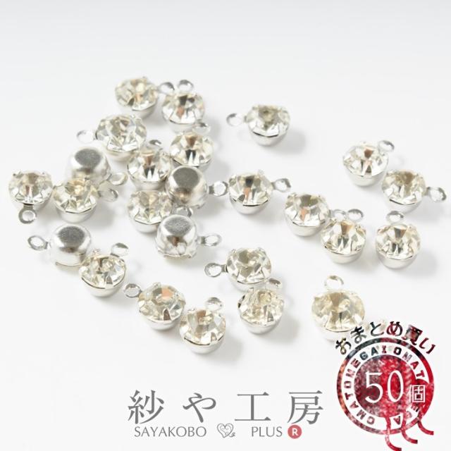 ラインストーンパーツ(約5mm)約50個 シルバーxクリスタル ラウンド カン付き 1穴 台付き フレームストーン 手芸材料 アクセサリー素材
