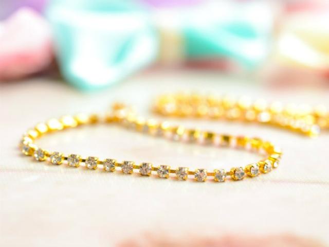 連爪 ガラスストーン(約1.5mm)約20cm ゴールドxクリスタル 連爪チェーン ダイヤレーン アクセサリーパーツ 手芸材料 レジン ネイル