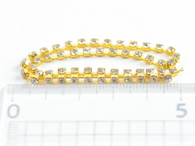 連爪 ガラスストーン(約2.3mm)約20cm ゴールドxクリスタル 連爪チェーン ダイヤレーン アクセサリーパーツ 手芸材料 レジン ネイル