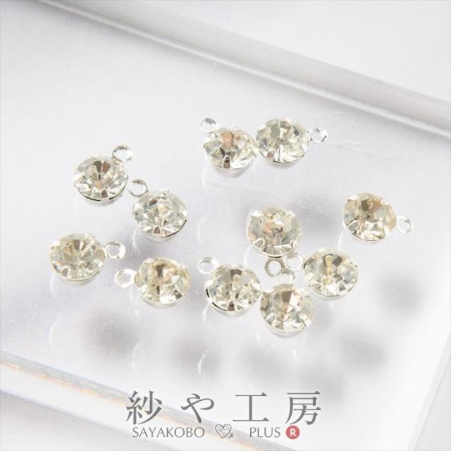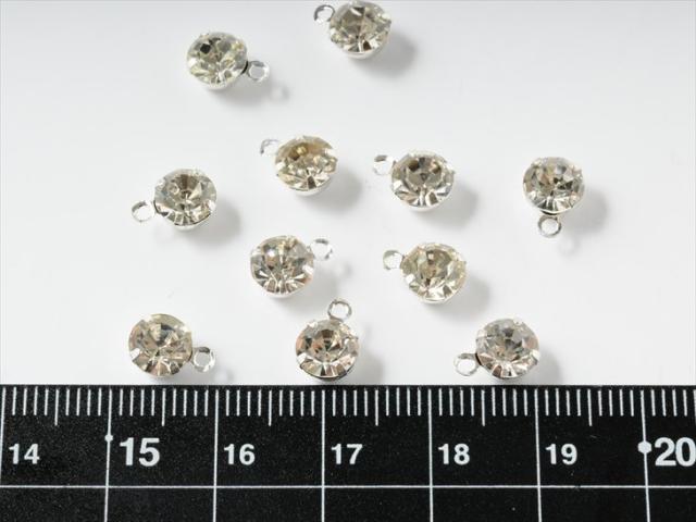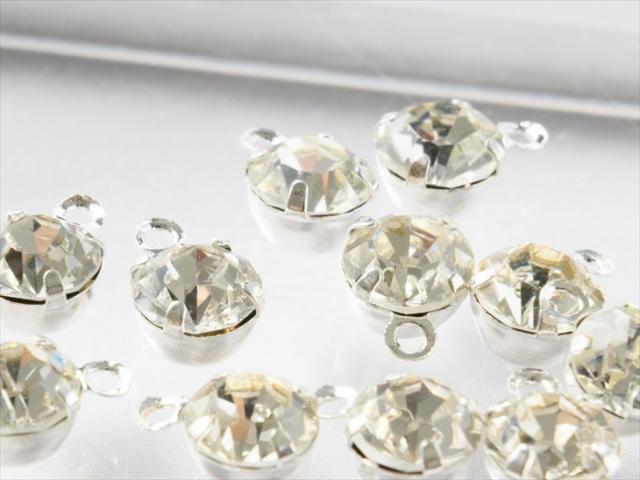 ラインストーンパーツ(約6mm)約10個 白銀xクリスタル ラウンド カン付き 1穴 台付き フレームストーン 手芸材料 アクセサリー素材
