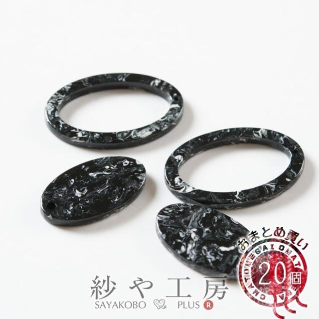 マーブルパーツ 楕円形セット 一つ穴 30mm ブラック 各20個 20ペア オーバル まとめ買い プラスチックチャーム 約3cm アクセサリーパーツ パーツ