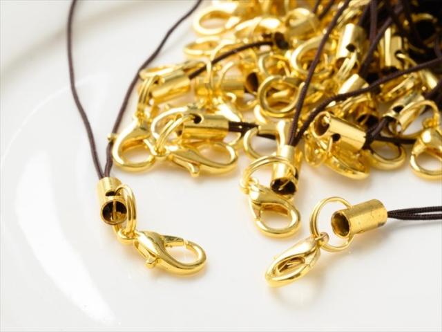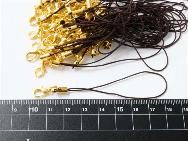 半2重マルカン・カニカン・ストラップ50本セット茶金ゴールド全長約90mm 紐長さ約70mm