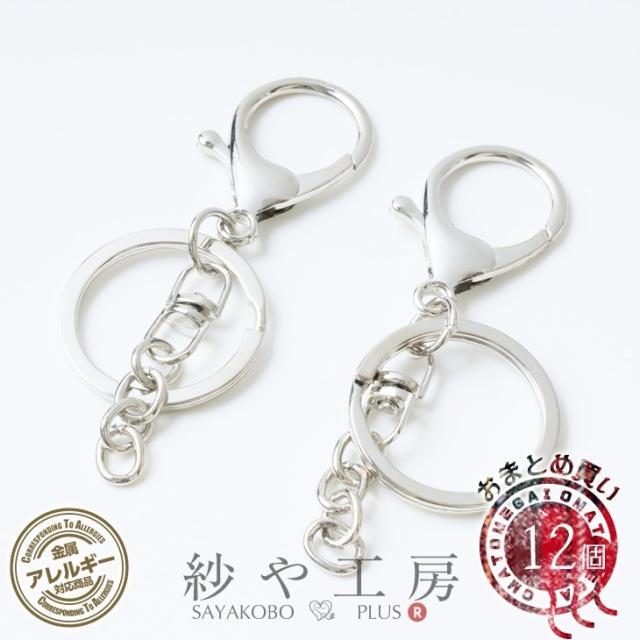 キーホルダーパーツ ニッケルフリー 65mm シルバー 12個 フック付 チェーン付 金属アレルギー対応 手作りキーホルダー 約6.5cm