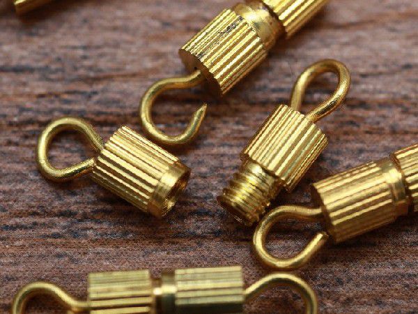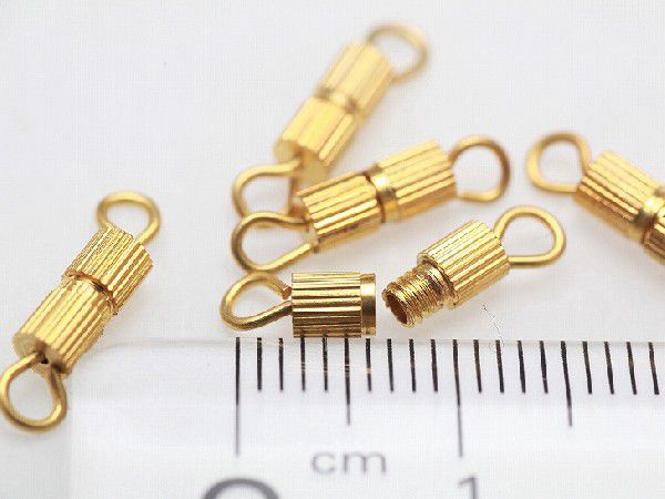 ネジ式クラスプ(約14×3mm)5個セット ゴールド ネジカン タルネジ バレルクラスプ 留め具 留め金具 ビーズパーツ 基礎金具 手芸材料