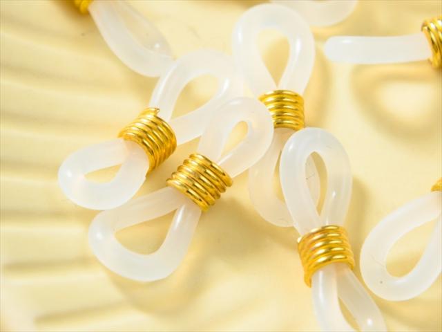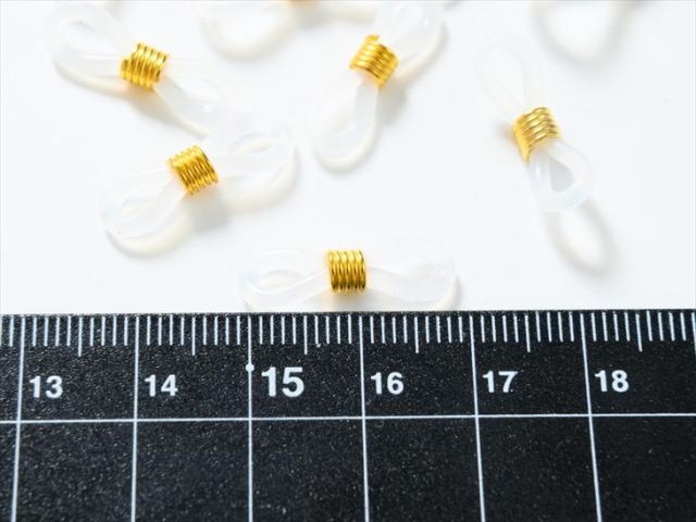 めがね留め パーツ グラスコード メガネ留め シリコン(樹脂ゴム) クリア&ゴールド 約20x6mm 約10個 眼鏡チェーン 透明 ホルダー