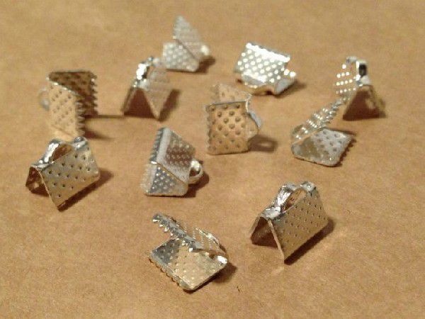 レース留め金具・ヒモ留め 10個セット(8mm 0.8cm) プラチナ 白銀 手芸用 金具 材料 手芸材料 パーツ レース タグ ニッケルフリー 金属アレルギー対応