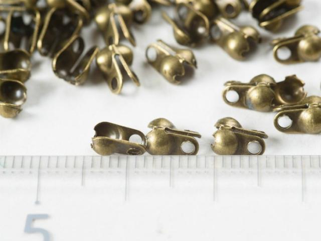 エンドパーツ Vカップ(ボール径:約2.4mm用)金古美 50個 ボールチェーン用 留め金具 端処理 ハンドメイド アクセサリーパーツ 通し穴
