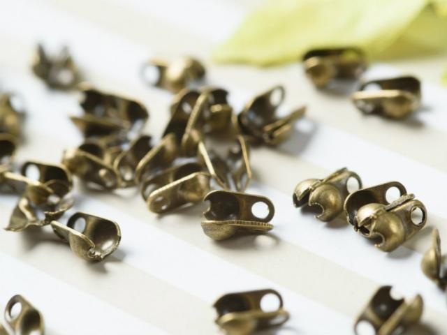 ボールチェーンの端のボールをサイズの合ったVカップの内側の溝に合わせたら閉じて通し穴に丸カンなどを通せば簡単に端処理完成!