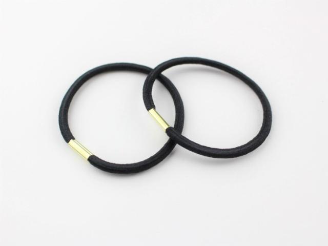 ヘアゴム ゴールド(径約5cm)2個 ブラック ヘア金具 リングゴム 手芸用品 ハンドメイド材料 手作り資材 素材 部品 アクアセサリーパーツ