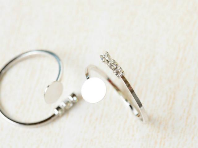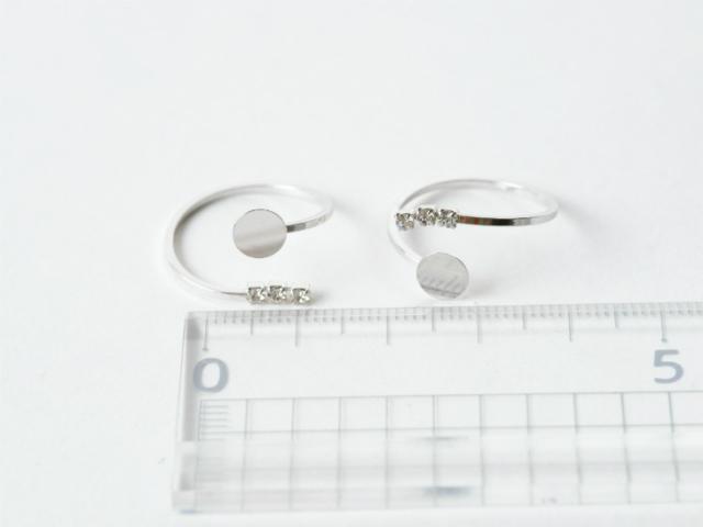 【内容詳細】貼り付け用平皿付きリングパーツ ラインストーン3粒ユラユラリング台 2個