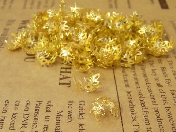 座金・花座パーツビーズキャップ14mm100個金GOLD