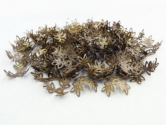 座金・花座パーツビーズキャップ14mm100個 金古美