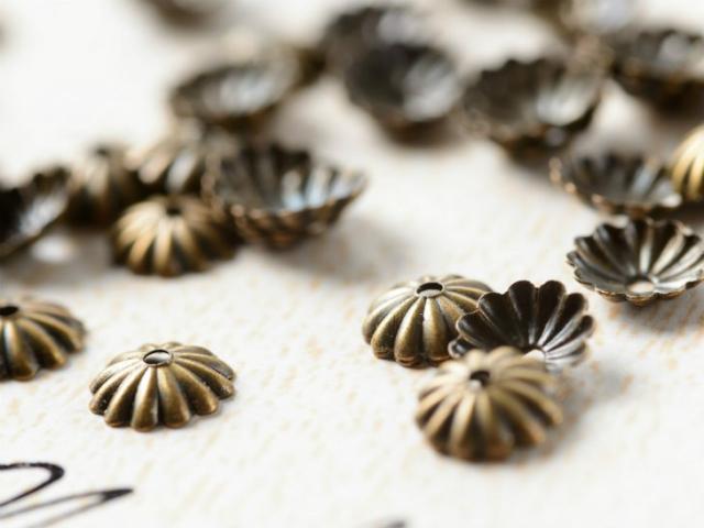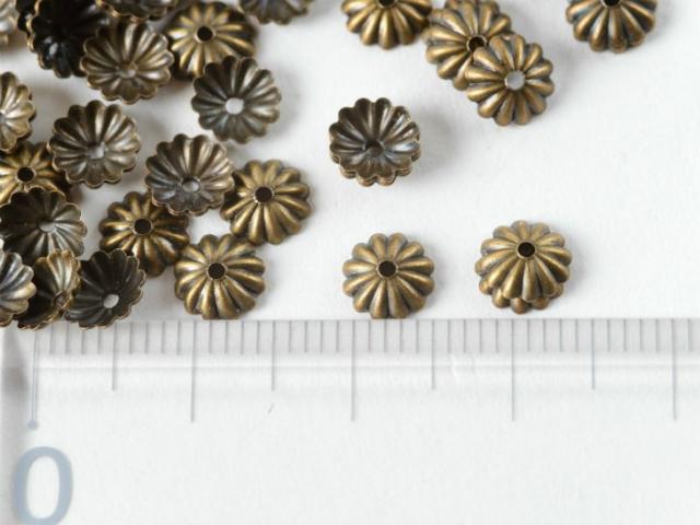 座金・花座・菊座パーツ 金古美 スチールメッキ 約6mm 約100個 金属アクセサリー ハンドメイド チャーム