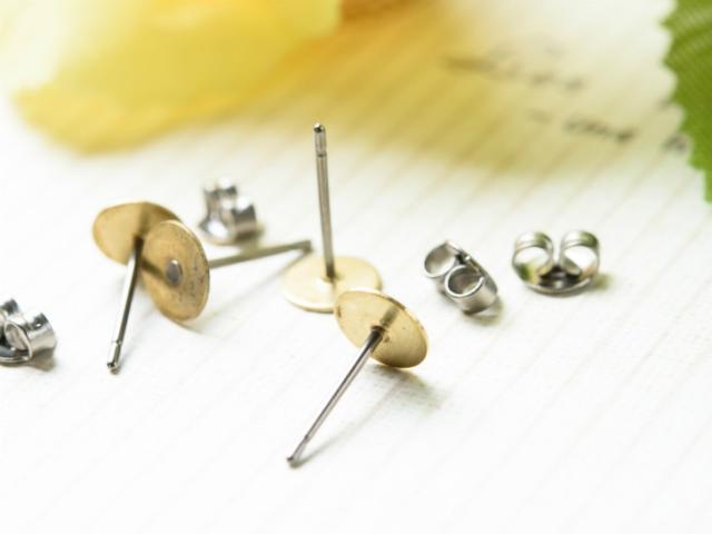 平皿付チタンポストピアス チタンキャッチ付き 約6mm 約50ぺア 丸皿 貼り付け 金属アレルギー対応