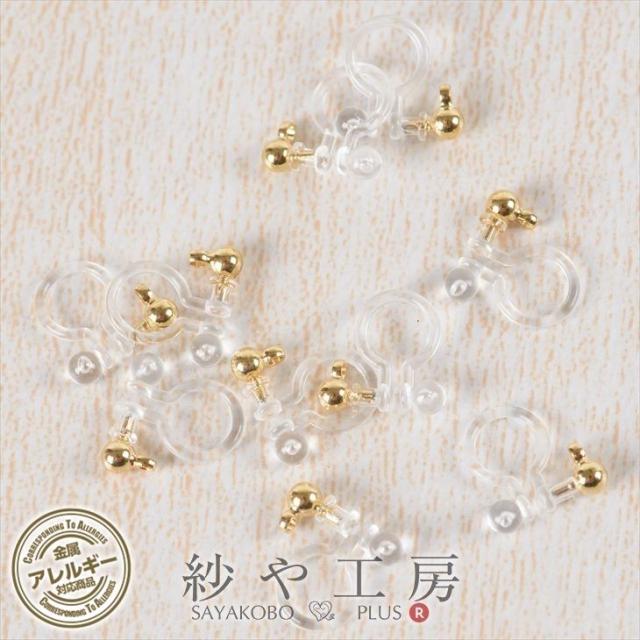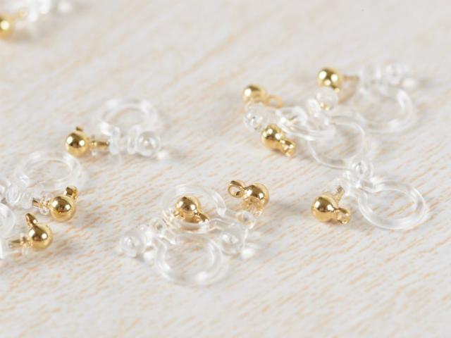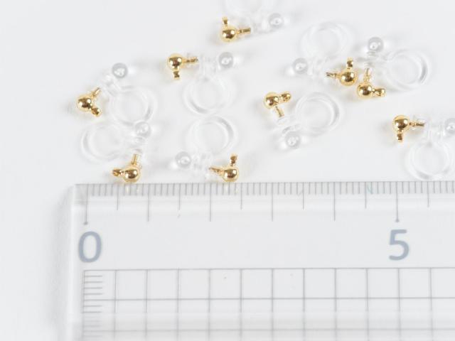 イヤリンパーツ 樹脂ノンホールピアス(約3mm玉)5ペア イヤーカフ イヤーカフパーツ クリアxゴールド カン付き金属アレルギー対応