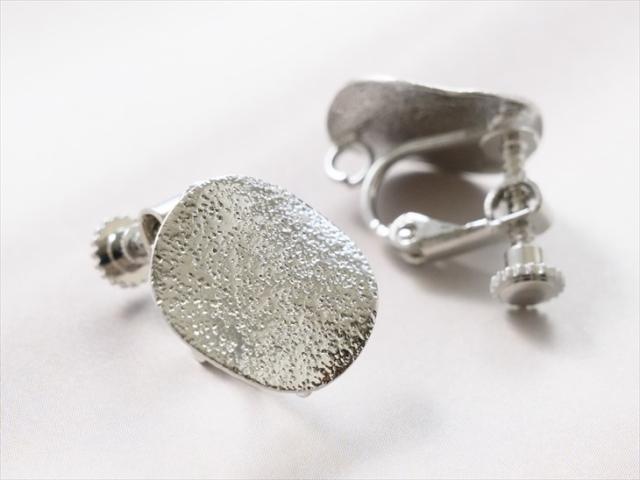 スターダスト加工プレート付 イヤリング金具 シルバー 直径約15.5mm 5ペア まとめ買い カン付 ハンドメイド パーツ イヤリング金具