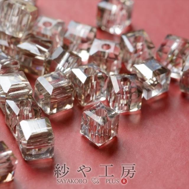 ガラスビーズ キューブ型 グレイジュ 4.5mm 1連 約98個前後 立方体 四角 カットガラス ガラスカットビーズ 約0.45cm アクセサリーパーツ パーツ 問屋 カットビーズ 通し穴 両穴 クリスタルカット ビーズ資材 手芸 服飾材料 材料 ハンドメイド資材 さや工房 手作り