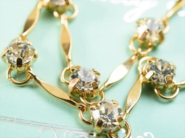 デザインチェーン 6mmラインストーン付 チェーン ゴールド 20cm 200mm 大ぶり 繋ぎパーツ ラインストーン付き ラインストーン 金属 鎖 アクセサリーパーツ