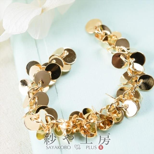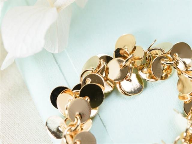 ゴールドの小さめまん丸プレートがたくさんついたチェーンです。