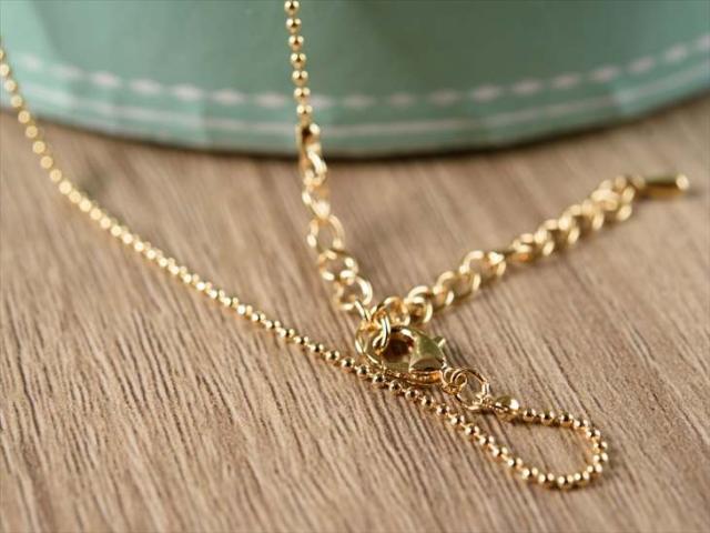 【関連キーワード】ゴールド 1本 1ヶ 約38cm アジャスター カニカン付き シンプル ボール型 丹銅製 ハンドメイド 丸型 金 金属 チェーンネックレス チェーン 金属チェーン シンプルネックレス シンプルチェーン ゴールドチェーン 金具 素材 完成品 アクセサリーパーツ パーツ 毛糸素材 さや工房 沙や工房