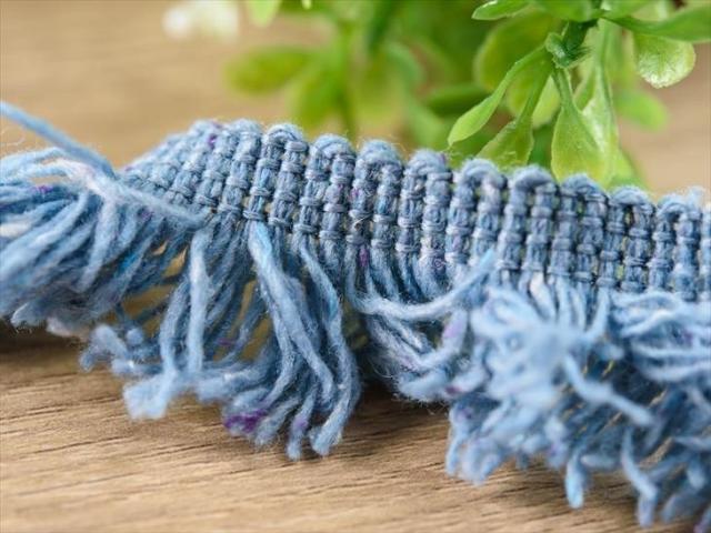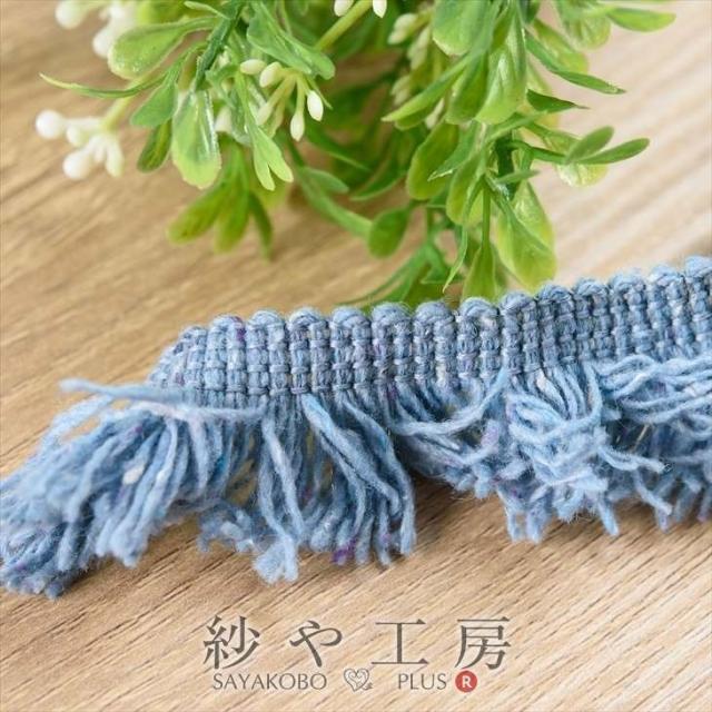 紗や工房 フリンジレース ニット風リボン ブルー 約50cm