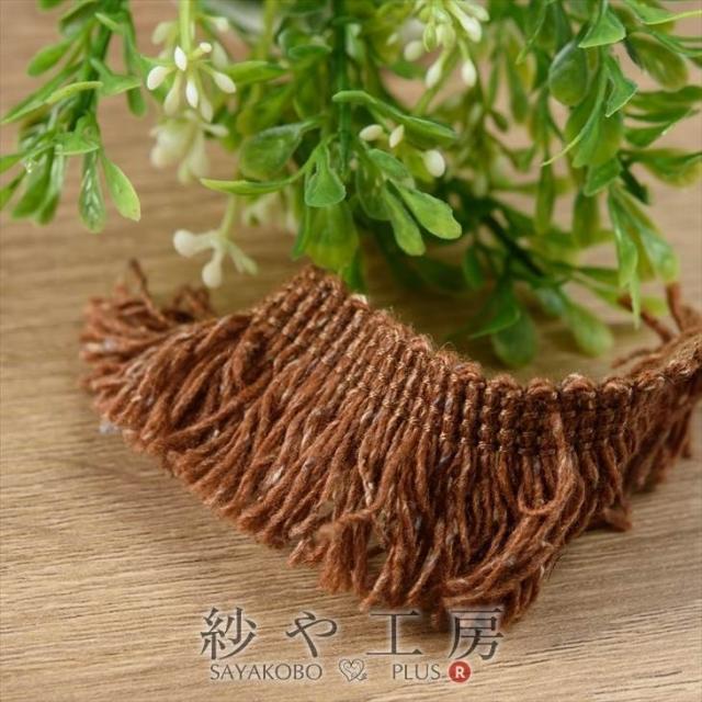 紗や工房 フリンジレース ニット風リボン ブラウン 約50cm