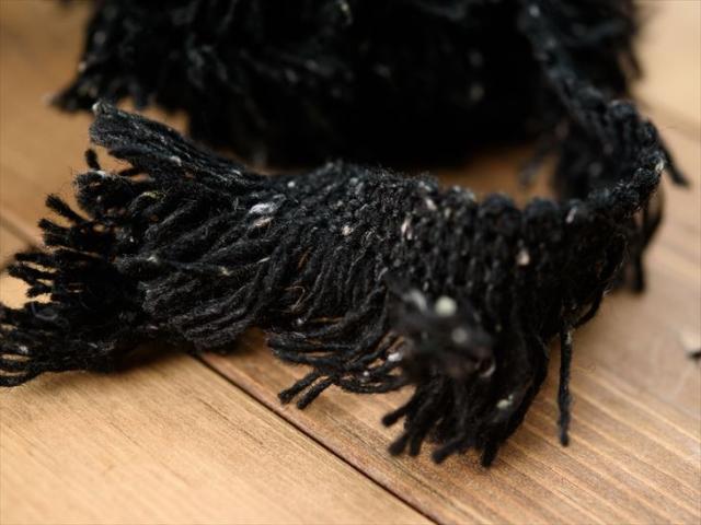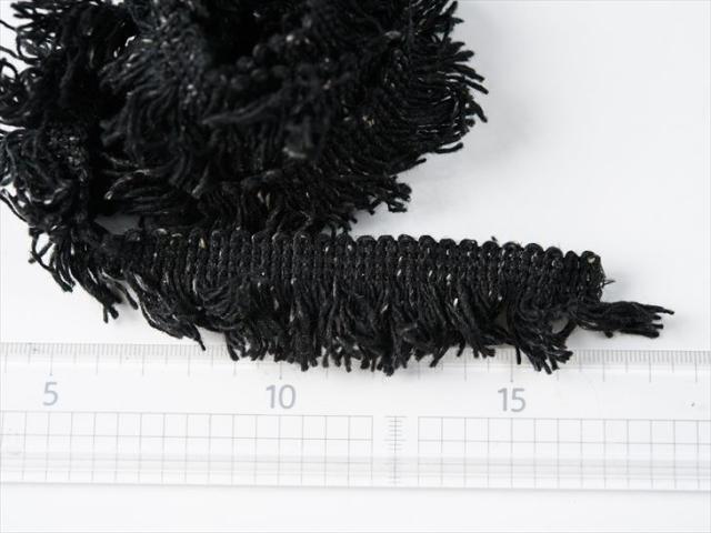紗や工房 フリンジレース ニット風リボン ブラック 約100cm