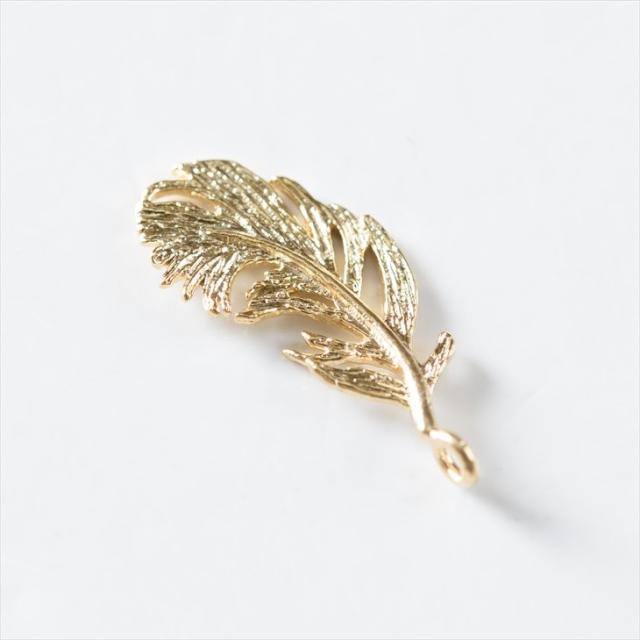 メタルチャーム フェザー 21mm ゴールド 1個 1ヶ 約2.1cm カン付き 真鍮チャーム 真鍮 アクセサリーチャーム アクセサリーパーツ パーツ