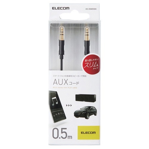エレコム AUXケーブル φ3.5オス-φ3.5オス スリム 0.5m ブラック(1コ入)[変換アダプター・ケーブル類]