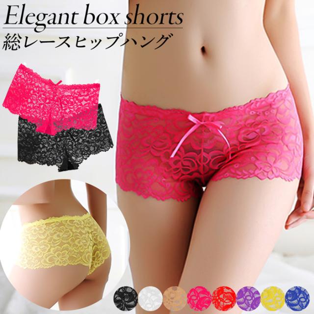 ショーツ レディース 総レース ボクサーパンツ ボックスショーツ ヒップハング ストレッチレース 透ける リボン ローライズ ハーフバック セクシー 可愛い 1508 プレゼント ギフト 母の日 父の日 敬老の日 バレンタイン ホワイトデー クリスマス