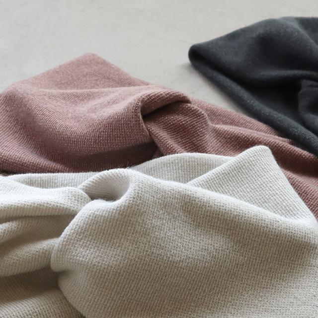 | 柔らかく使い勝手の良いニット素材の幅広ヘアバンドです。 生地に織り込まれている細かなラメがさりげなく効いて大人っぽい印象に! トレンド感あるワイドサイズで小顔効果もあり、コーディネートにアクセントを加えてくれます。 | |