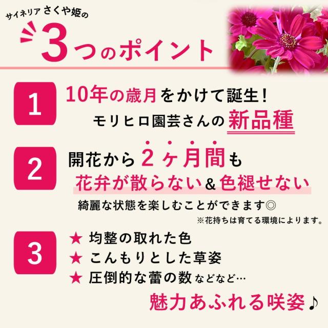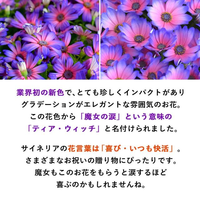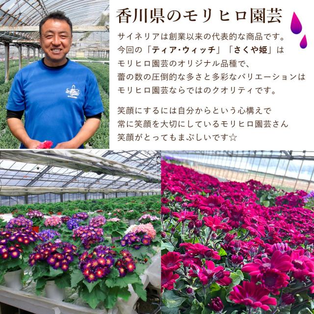 モリヒロ園芸さんの季節の 鉢花 5号 鉢 送料無料 プレミアム サイネリア ティア・ウィッチ さくや姫 鉢植え プレゼント 花 春 お祝い 誕生日 プレゼント 女性 母 義母 実家 両親 女友達 友人 花鉢 上司 退職祝い 新築祝い お店 周年祝い フラワー ギフト 魔女の涙
