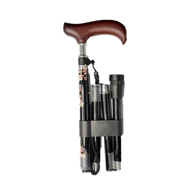 折りたたみ杖 女性用 夢ライフステッキ スリムネック折りたたみスリムタイプ(柄) ブラックチェリー 全長73.5〜83.5cm 婦人用・高齢者 ウェルファン