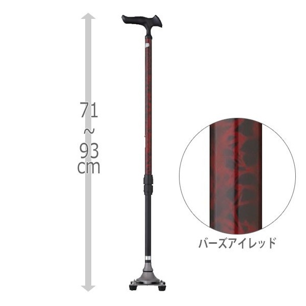 多点杖 かるがも4ポイントステッキ WB3827 バーズアイレッド 非課税 フジホーム 外出 歩行 散歩 介護